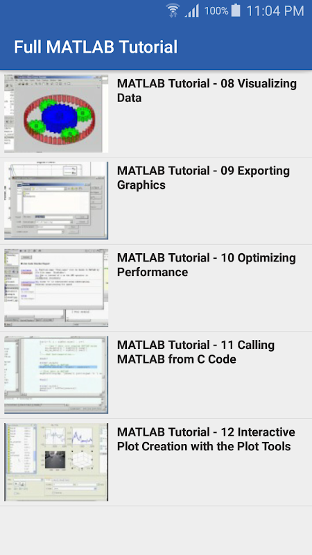 Matlab Tutorial App is a full and free Matlab course .It started out as a matrix programming language where linear algebra programming was simple. It can be run both under interactive sessions and as a batch job. This App is suitable for beginner to learn about matlab programming software.In this application you will learn what is matlab and also many type of matlab programming codes.