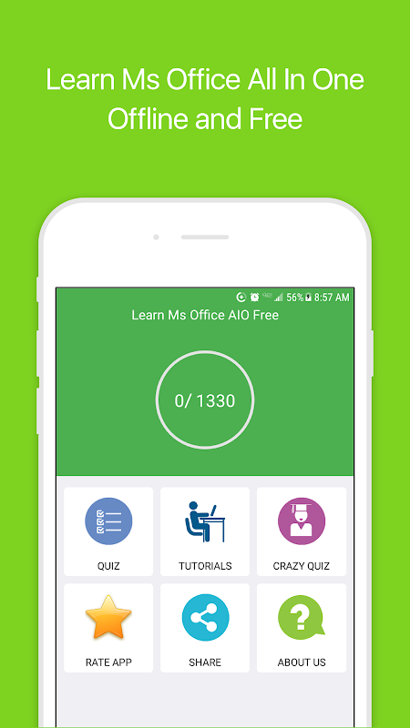 Learn Microsoft Office complete courses with 1330 quizzes offline free