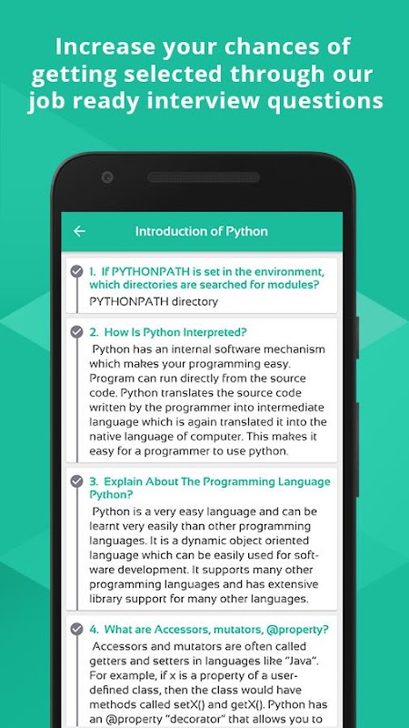 STUDENTI E LAVORATORI DI LAVORO: L'app fornisce materiale di studio, video facili da capire. Con le ultime domande di intervista aggiornate regolarmente, l'app Python aiuta a creare opportunità nel campo dello sviluppatore Python.