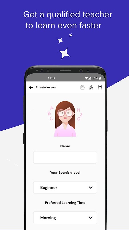La nostra app ti consente di scegliere la tua strategia quando inizi a imparare lo spagnolo. Puoi iniziare imparando nuove parole, fare un quiz, usare flashcard o chiedere a un insegnante qualificato di imparare più velocemente.