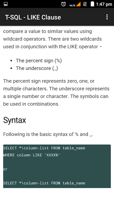 Informazioni sull'APK Learn T-SQL DB