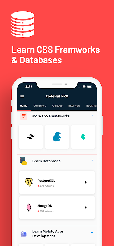 Se sei interessato allo sviluppo di app per dispositivi mobili, la nostra app copre anche framework come React Native, Ionic e NativeScript. Con la nostra app potrai apprendere tutto ciò che ti serve per diventare un abile programmatore e sviluppatore.