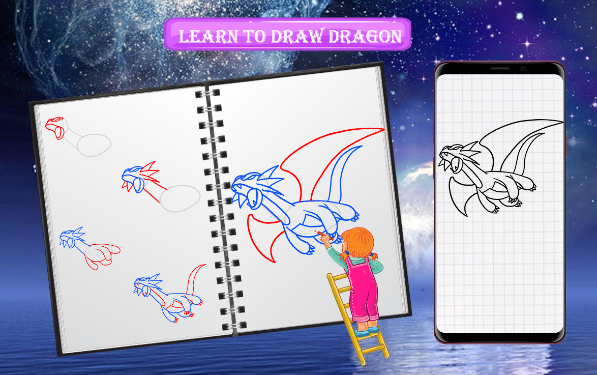 How to Draw a Dragon will teach you how to draw a Dragon from all around the world. Draw a Dragon app contain best collections of a Dragon, its very easy to use and learn very quickly.