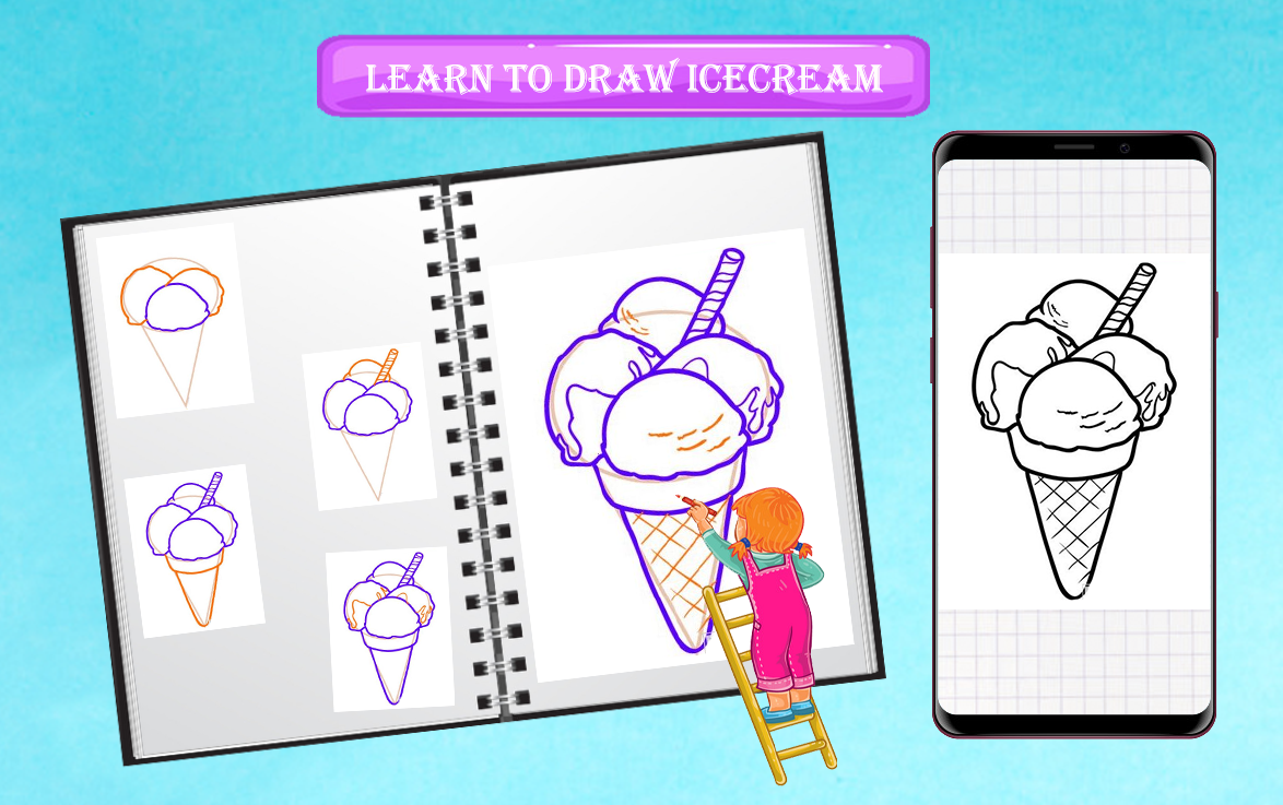 How to Draw an Icecream will teach you how to draw an Icecream from all around the world. Draw an Icecream app contain best collections of an Icecream, its very easy to use and learn very quickly.