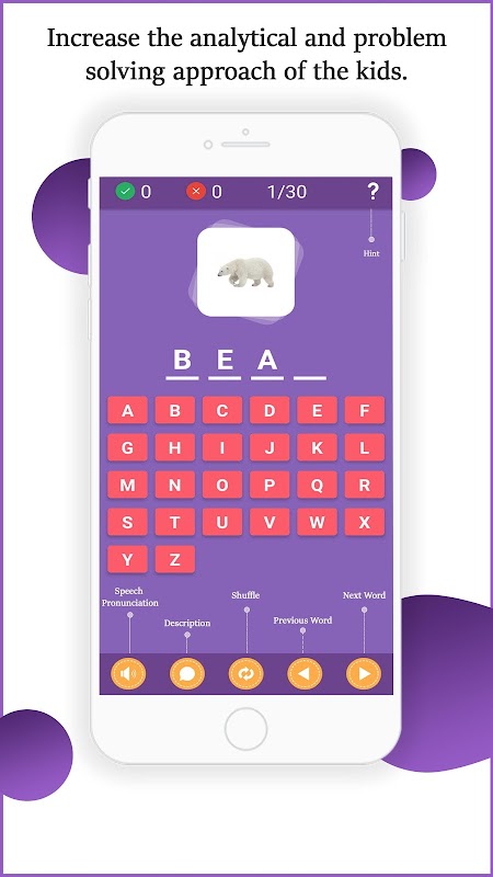 Ampia gamma di categorie per eccellere i bambini imparano a scrivere in ogni dominio con immagini e pronuncia, questo gioco aumenterà l'approccio analitico e di risoluzione dei problemi dei bambini -