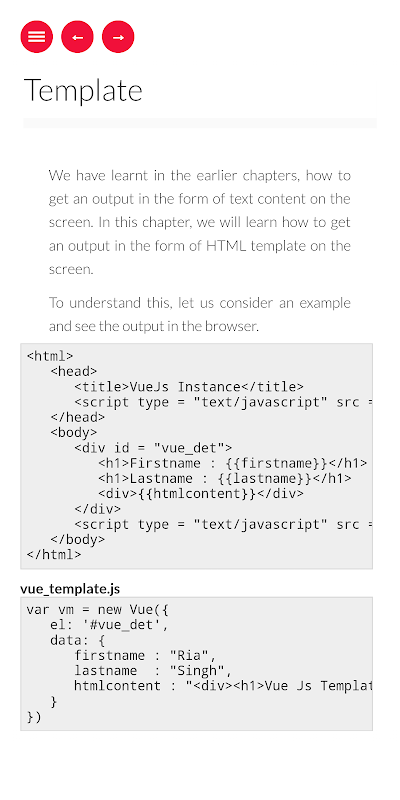 Questa app GRATUITA ti aiuterà a comprendere correttamente VueJS e ti insegnerà come iniziare a programmare. Qui stiamo coprendo quasi tutte le funzioni, le librerie, gli attributi, i riferimenti. Il tutorial sequenziale ti consente di sapere dal livello base a quello avanzato.