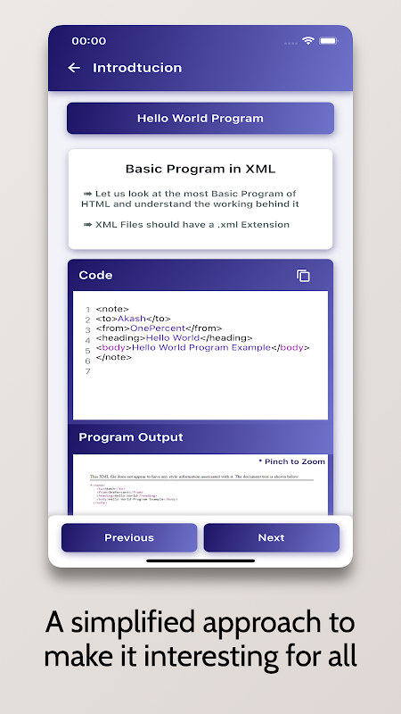 Che tu stia imparando XML per hobby, per la scuola/università o per costruire una carriera, questo tutorial è quello che fa per te! Ti porta dalle basi ai concetti avanzati, il tutto con un'interfaccia elegante e interattiva.