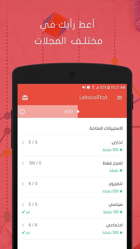 unanime punti rispondendo questionari in modo continuo. Quindi sostituire i tuoi punti premi di valore forniti attraverso l'applicazione Lebanonstat / LebanoStat
