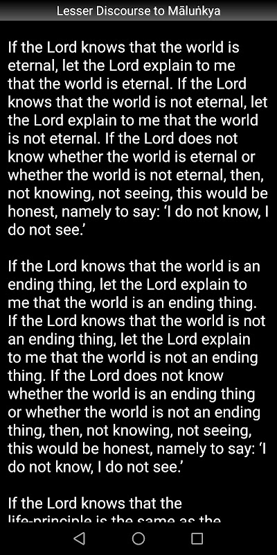 Un monaco esige che il Buddha risponda alle sue domande metafisiche, altrimenti si spoglierà. Il Buddha lo paragona a un uomo colpito da una freccia, che rifiuta il trattamento finché non può avere tutte le sue domande sulla freccia e l'arciere ha risposto.