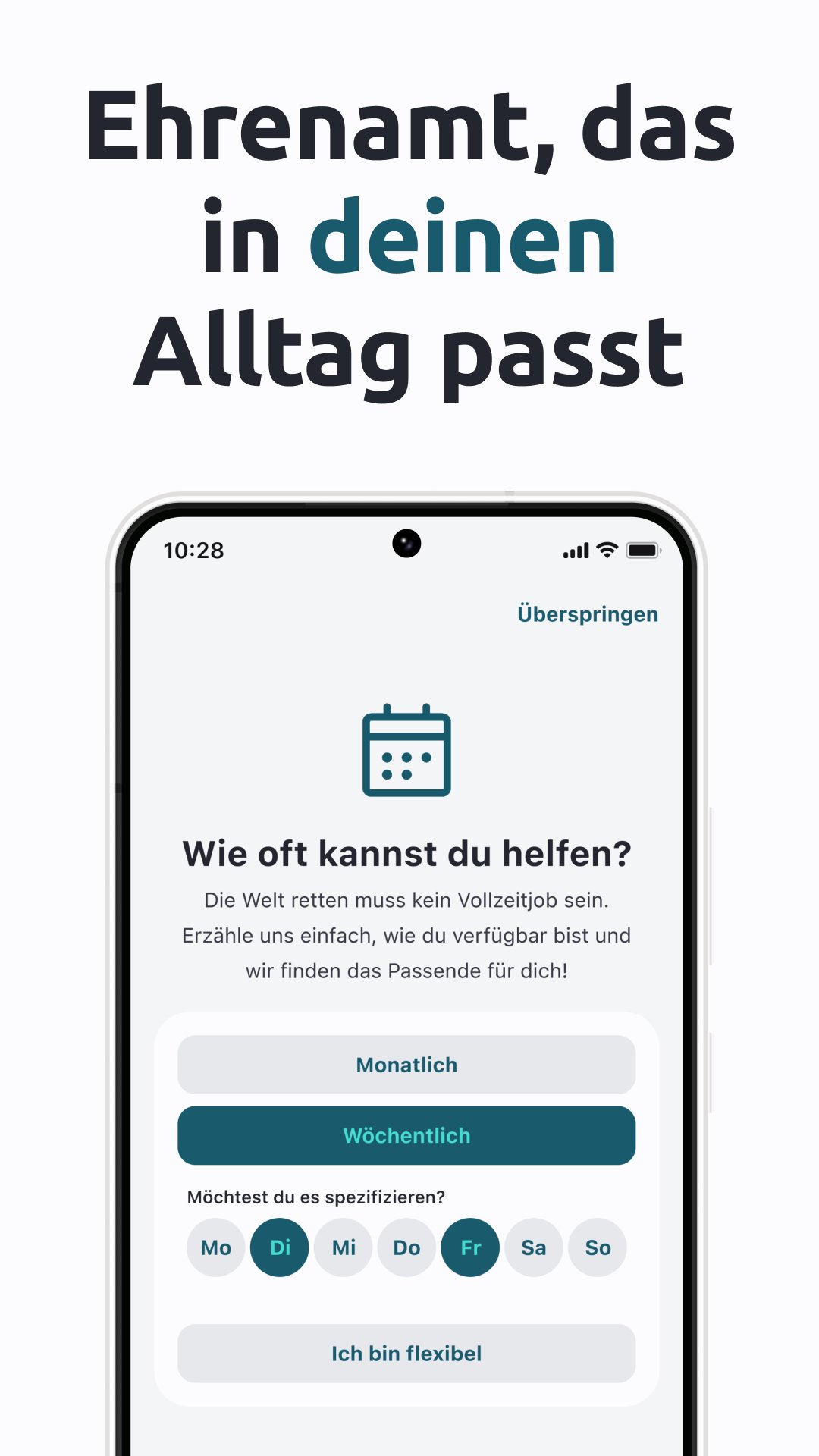 Hai scoperto la tua nuova posizione di volontariato preferita nell'app? Grande! Quindi ora puoi contattare l'organizzazione con un semplice clic ed esprimere il tuo interesse. Una persona di contatto si metterà in contatto con te a breve.