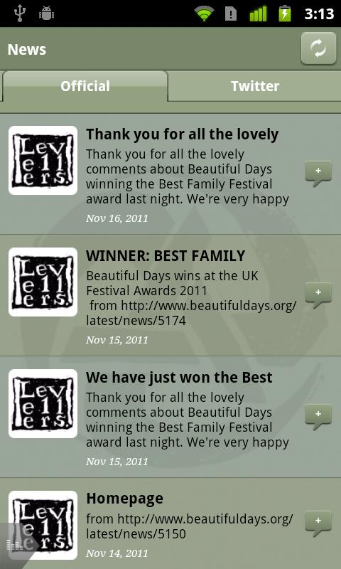 Listen to music, watch videos, buy merchandise, connect with other fans. Get all the latest news feeds on all things Levellers including tour dates, Beautiful Days festival bringing you the headliners when announced and info on buying tickets. Access to the Levellers own web site and the Levellers recording studio, Metway Studios.