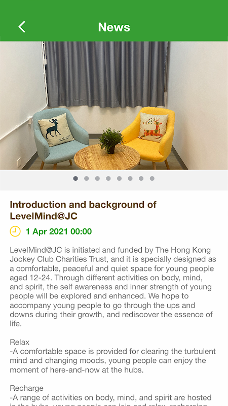 I membri possono informarsi sulle notizie e le informazioni del "Jockey Club Parallel Hearts Project" nell'app, iscriversi ad attività relative alla salute fisica e mentale e richiedere informazioni sui membri.