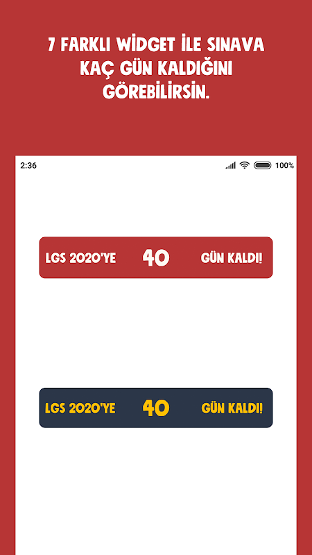 Esistono sette diversi widget che puoi aggiungere dalla schermata principale del tuo telefono. Con questi widget puoi vedere quanti giorni mancano a LGS senza entrare nell'applicazione.