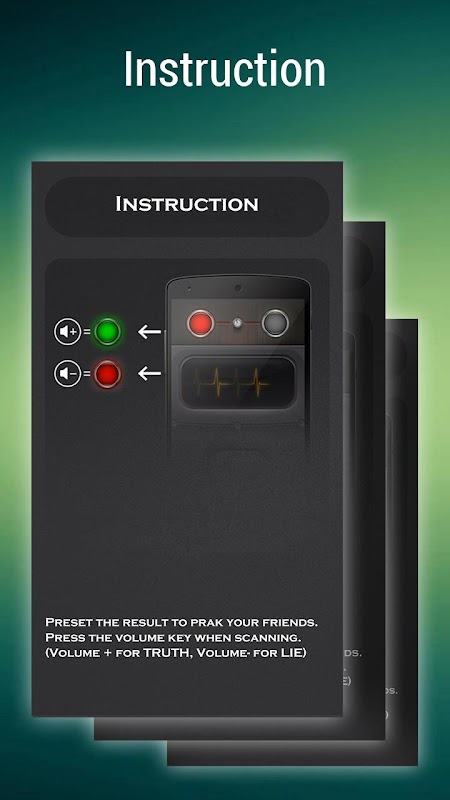 ☆ Allow you to preset the result to prank your friends! Press the volume key when scanning. (volume+ for truth, volume- for lie).