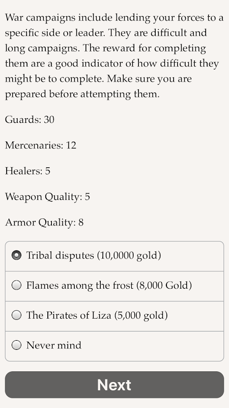 "Life of a Mercenary" è un romanzo fantasy interattivo di 338.000 parole di Philip Kempton, in cui le tue scelte controllano la storia. È interamente basato sul testo, senza grafica o effetti sonori, e alimentato dal potere vasto e inarrestabile della tua immaginazione.