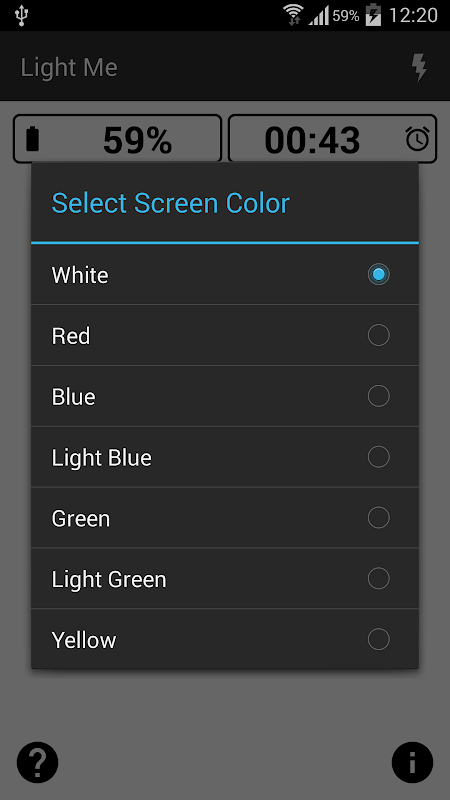 A timer makes sure the flash or screen will turn off after a preset period of time to prevent battery drain. You can set the timer to any value between 1 and 15 minutes. The app also displays very clearly the battery charge percentages.