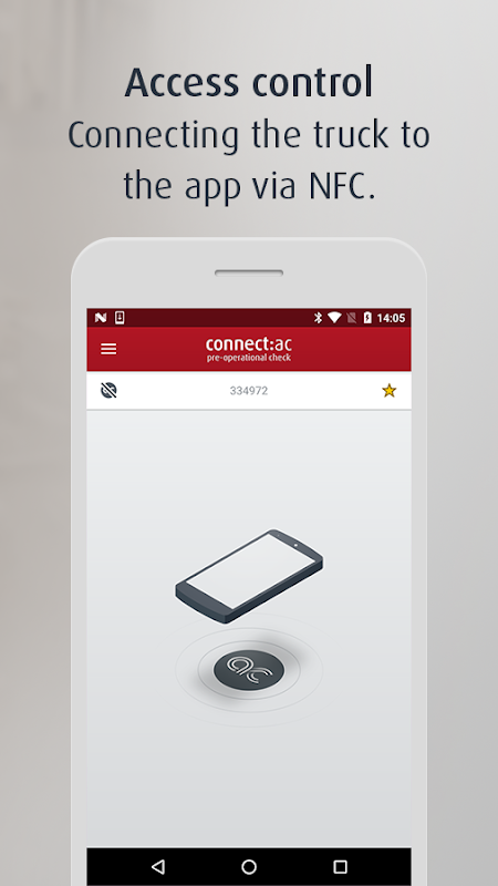 The truck is connected to the app via NFC. The truck can only be started once the visual inspection of it has shown there to be no serious faults.