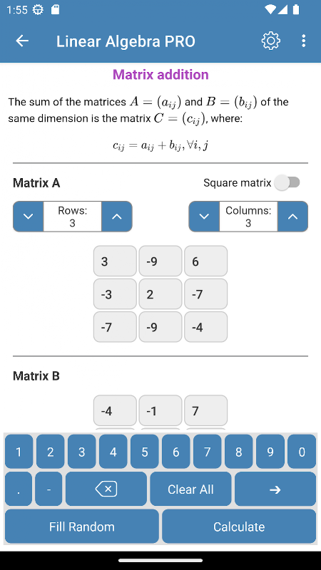 L'applicazione per il calcolo di matrici, determinanti e vettori è uno strumento molto utile. È progettato per studenti e ingegneri che utilizzano calcoli matriciali nei loro studi o nel lavoro.