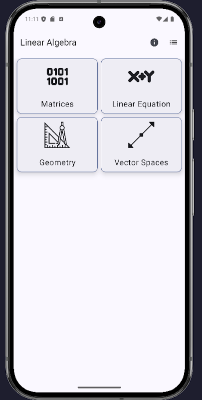 Algebra Lineare è un'app per risolvere alcuni problemi matematici in mobilità. In questa app, è necessario inserire il valore e fare clic sul pulsante Calcola per ottenere il risultato. È possibile trovare alcuni dei teoremi fondamentali dell'Algebra Lineare e calcolarne i calcoli direttamente nell'app. L'app è molto facile da usare e può essere scaricata gratuitamente. Ha un'interfaccia utente molto intuitiva. Tutte le formule fornite sono facili da capire e viene fornita una rapida introduzione ai metodi dell'algebra lineare. È possibile generare valori casuali per le matrici e calcolare il risultato.