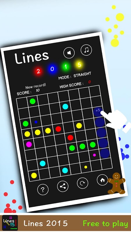 -La modalità dritta allinea 5 o più sfere dello stesso colore in una linea che segue la linea orizzontale / verticale / incrociata.