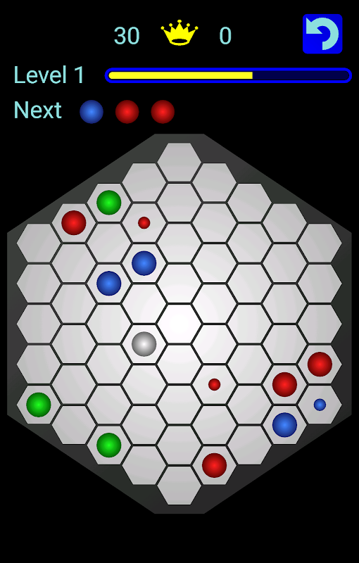 The goal of the game is to build lines of 5 balls at a same color by moving them to any reachable place in the board.
