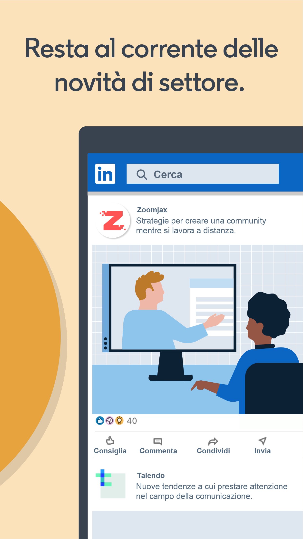 • Notizie di business: scopri contenuti, condividi articoli con i tuoi collegamenti e scrivi post
