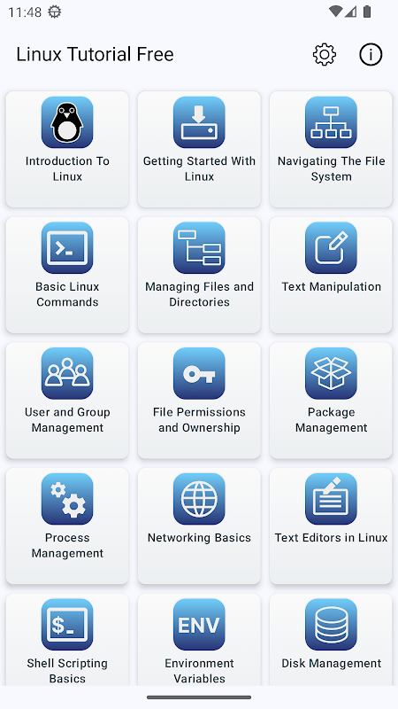 Impara i comandi Linux e l'amministrazione di sistema con la nostra app tutorial completa. Perfetta per i principianti che iniziano il loro percorso con Linux e per i professionisti che si preparano per le certificazioni.
