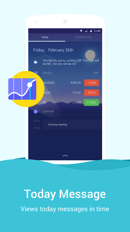 -Views Today message in time, including today weather, stock info, calendar info, etc.