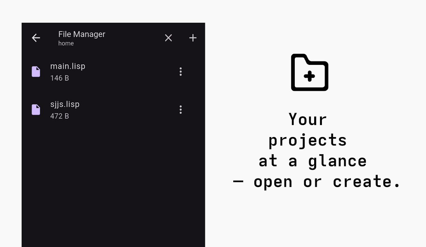 Lisp IDE offre un ambiente di sviluppo Common Lisp completo basato su Linux sul tuo telefono o tablet Android. Scrivi, esegui, compila e testa programmi Lisp su Android senza bisogno di una connessione a Internet. Perfetto per imparare Lisp, creare progetti, creare script o sperimentare la programmazione funzionale ovunque.