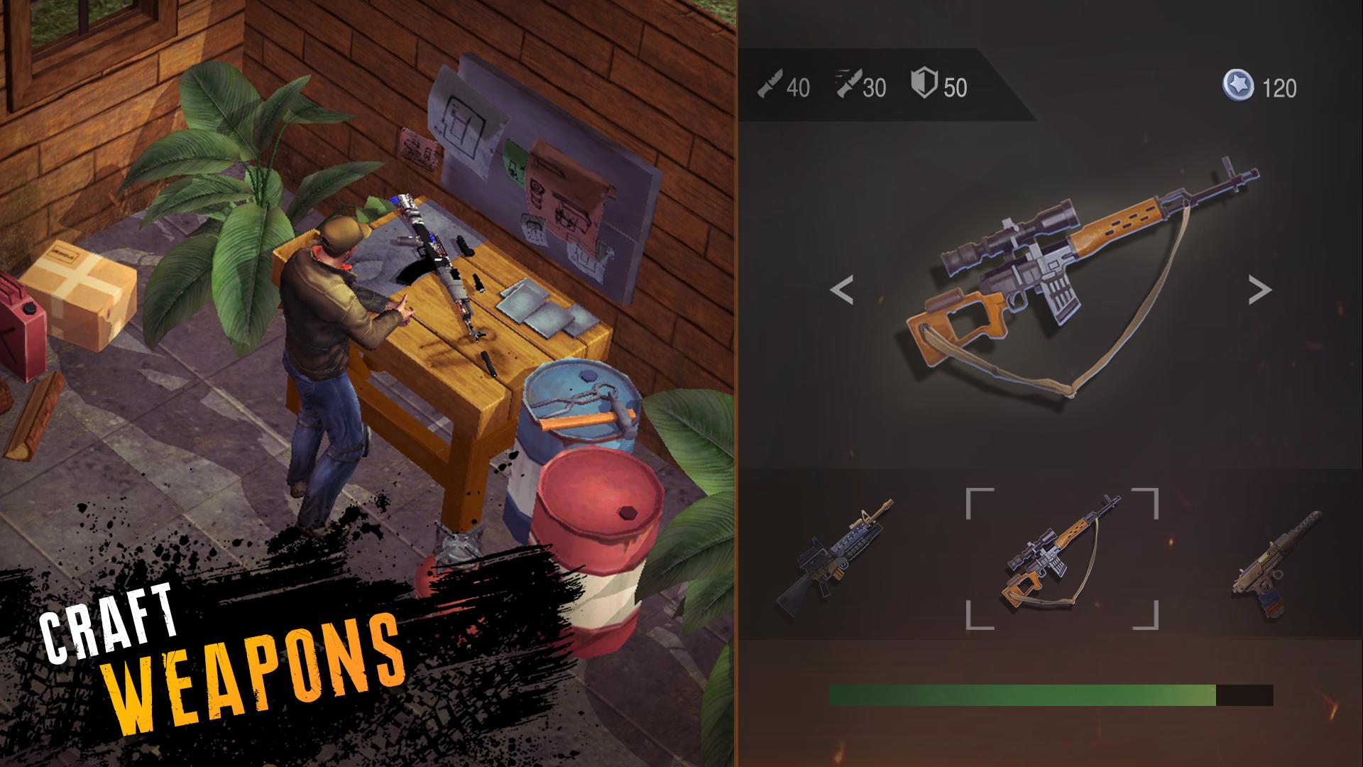 Il nostro gioco di sopravvivenza è imprevedibile: l’ultimo di noi può sempre diventare una vittima. Crea armi potenziate come AK-47, M4, ecc. e difenditi dai morti alla luce del giorno.