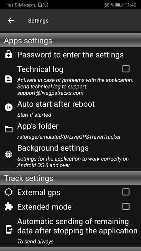 Per inviare i dati, è necessaria una connessione Internet (GPRS, WI-FI o qualsiasi altro modo per connettere il tuo dispositivo Android a Internet). Ma la registrazione della traccia stessa non dipende dalla connessione e può essere eseguita in modalità offline.