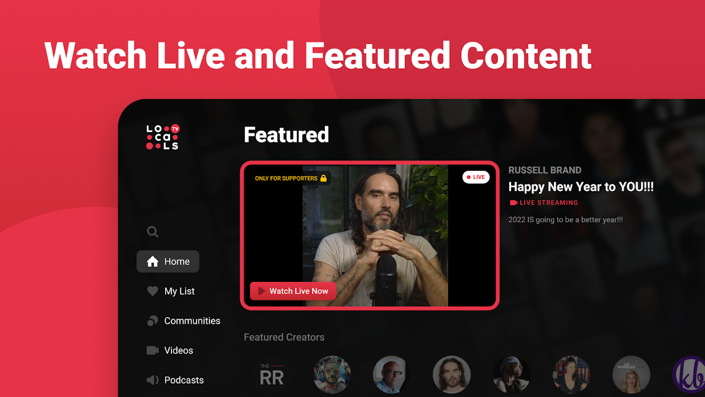 L'app LocalsTV fornisce accesso diretto ai tuoi video e podcast preferiti dai creator. Guarda e ascolta i contenuti sul grande schermo e naviga facilmente tra i contenuti e le offerte di video e podcast della community. LocalsTV ti consente di visualizzare in anteprima i contenuti prima dell'acquisto, nonché di visualizzare contenuti gratuiti su più comunità e creatori. Salva i tuoi contenuti preferiti per visualizzarli in seguito in Il mio elenco e utilizza la funzionalità di ricerca per trovare video e podcast specifici.