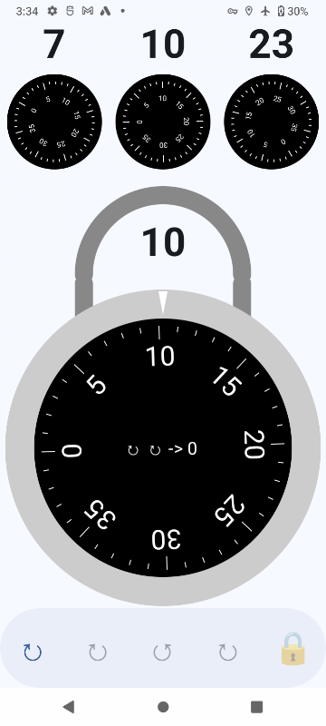 🔐 Simulazione di lucchetto autentica: grafica del quadrante accurata e rotazione fluida per una sensazione realistica
