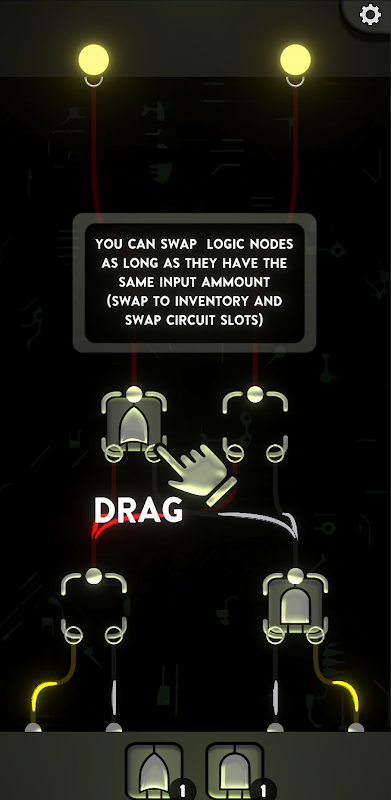 Trascina e rilascia diverse porte logiche (AND, OR, NOT, XOR e altre) negli slot del circuito per manipolare il flusso dei segnali binari. Il tuo obiettivo è abbinare l'output finale al valore target posizionando e collegando strategicamente le porte.