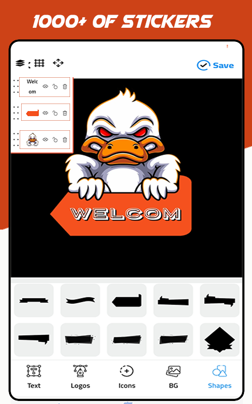 Logo Maker include una vasta collezione di arte (adesivi), elementi grafici, forme, sfondi e trame classificati per creare un logo originale in pochissimo tempo.