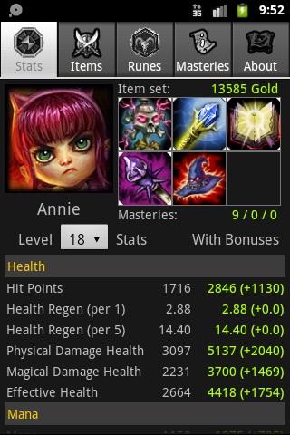 LoL Builder - Full calcolatrice stats campione per "League of Legends" giocatori