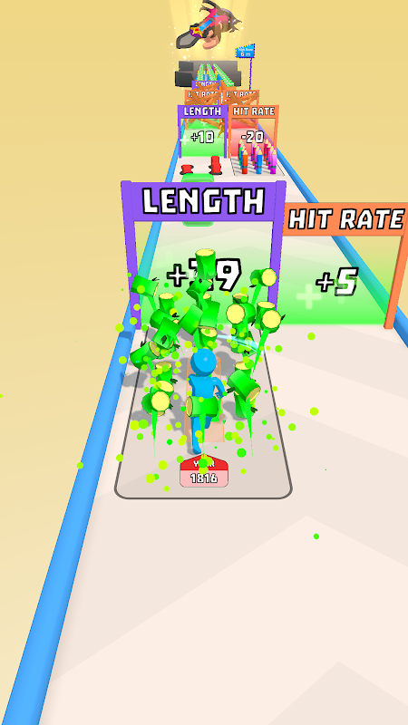 🔪 Scatena l'azione all'avanguardia nella nostra emozionante avventura! Con le lame estensibili a portata di mano del tuo personaggio, più le allunghi, più potrai tagliare. Evolvi e potenzia te stesso con ogni taglio, guadagna denaro sezionando abilmente omini stilizzati. Manipola le porte per aumentare ulteriormente il tuo potere.