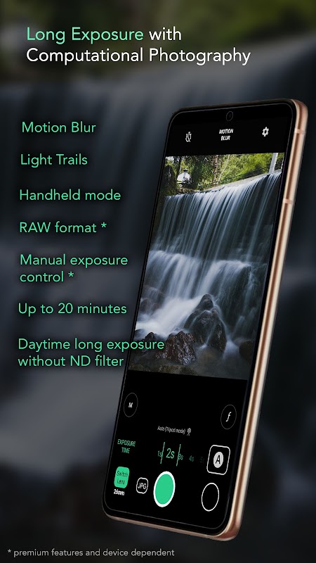 Motion ProCam è un'app per fotocamera creata per scattare facilmente a lunghe esposizioni. Regola semplicemente il tempo di esposizione, tieni fermo e scatta, Motion ProCam si allineerà automaticamente e produrrà una foto a lunga esposizione. Può essere utilizzato durante il giorno senza preoccuparsi che le foto siano sovraesposte e senza filtro ND.