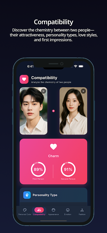 App AI che analizza colore personale, compatibilità, aspetto, emozione, moda.