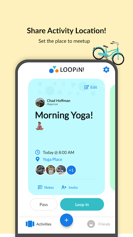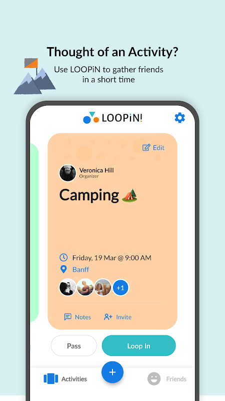Usa LOOPiN per elaborare un piano in pochissimo tempo. Con pochi tocchi di un pulsante crea un'attività e invia ai tuoi amici una notifica per partecipare e invitare altri. È proprio così semplice!