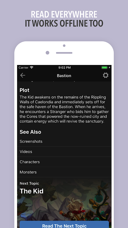 This app includes stories, character informations trivias, gameplays and many other content like photos & wallpapers for Bastion game.