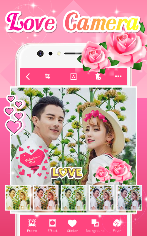Decorate your and your loved Ones photo with romantic love photo camera!
