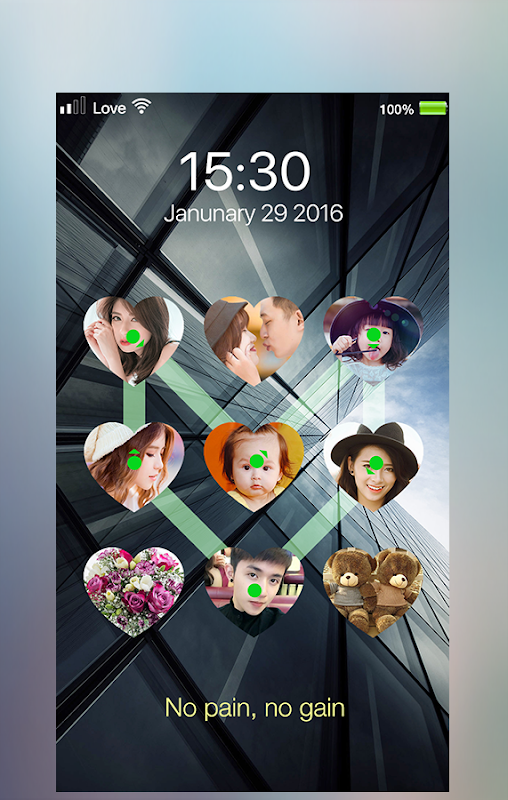 Si tratta di un'applicazione utile e piacevole. Aiuta personalizzare la schermata di blocco con molti options.You avrà un bellissimo disegno con 9 figure del cuore, è possibile aggiungere le tue immagini preferite su forme di cuore. Si può vedere la data / ora sullo schermo di blocco ed è possibile modificare il colore, il formato di data / ora. Puoi aggiungere le tue parole o alcuni nomi sulla schermata di blocco.