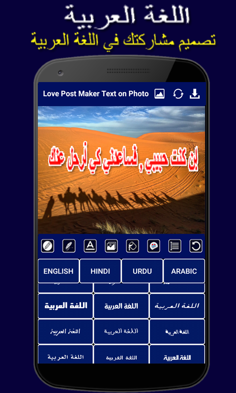 Poetry now added that helps you to make your posts more attractive and beautiful .now write your text on photos in multi languages .text on photo option helps you to design posts for different events mean now you can design your posts by writing your text on beautiful HD background images.Write your text in multi language like English,Urdu,Hindi and Arabic.Multi Language option makes your designing beautiful.