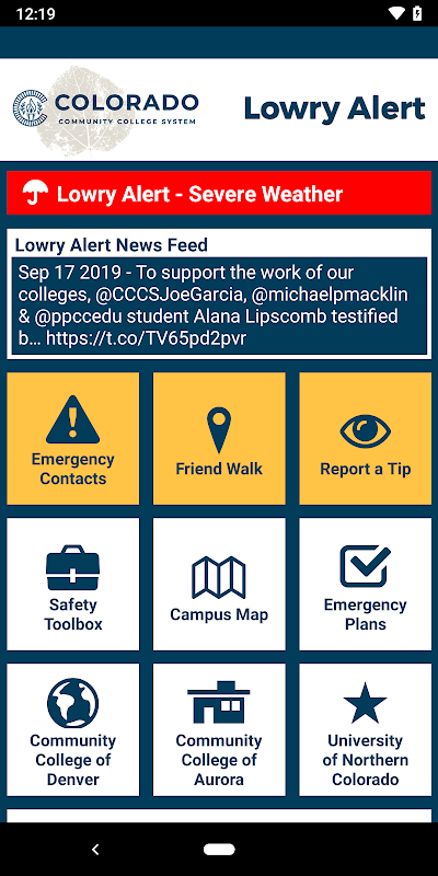 Lowry Alert è l'app di sicurezza ufficiale del Colorado Community College System