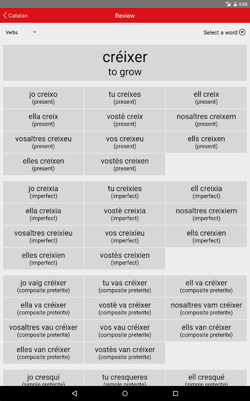 • Verbi: prova la tua capacità di analizzare e coniugare verbi catalano regolari e irregolari.