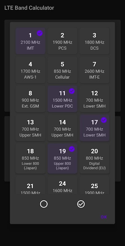 On top of the basic calculation, you can also enter an already-calculated value to see the LTE bands it represents.