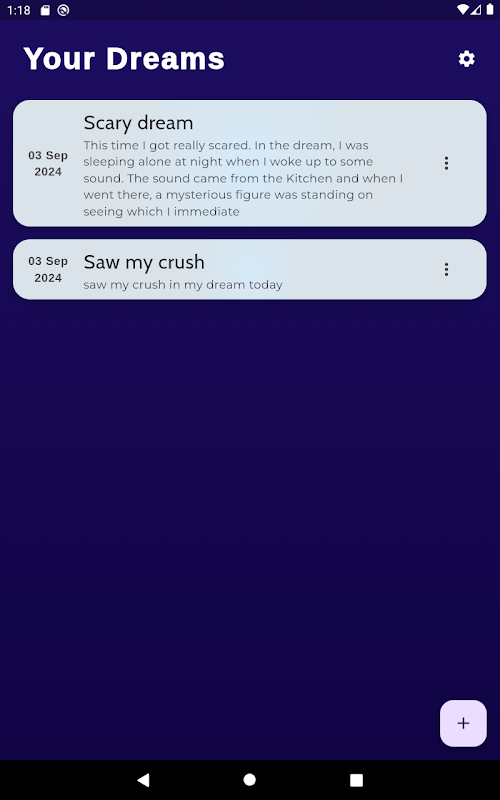 Cattura ogni aspetto del tuo sogno con campi per titolo, data, ora, contenuto, tag, lucidità, chiarezza e se si è trattato di un incubo. Inoltre, puoi personalizzare le tue voci con tag e persino valutare la chiarezza di ogni sogno.