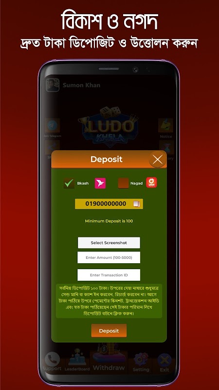 বাংলাদেশ থেকে লুডু খেলার একটি চমৎকার অ্যাপ। লুডু খেলা পছন্দ করে থাকলে এই অ্যাপটি আপনার জন্য। ১০০% বিশ্বস্ত একটি অ্যাপ এটি। ঘরে বসেই টাকা ইনকাম করার জন্য এটি একটি দারুন অ্যাপ। বিকাশ এবং নগদের মাধ্যমে খুব সহজে ডিপোজিট করে সেই টাকা দিয়ে খেলে আপনার প্রতিপক্ষকে পরাজিত করার মাধ্যমে টাকা ইনকাম করতে পারবেন। এবং লুডু খেলে বিজয়ী হলেই সেই টাকা আবার বিকাশ এবং নগদের মাধ্যমে উত্তোলন করতে পারবেন।