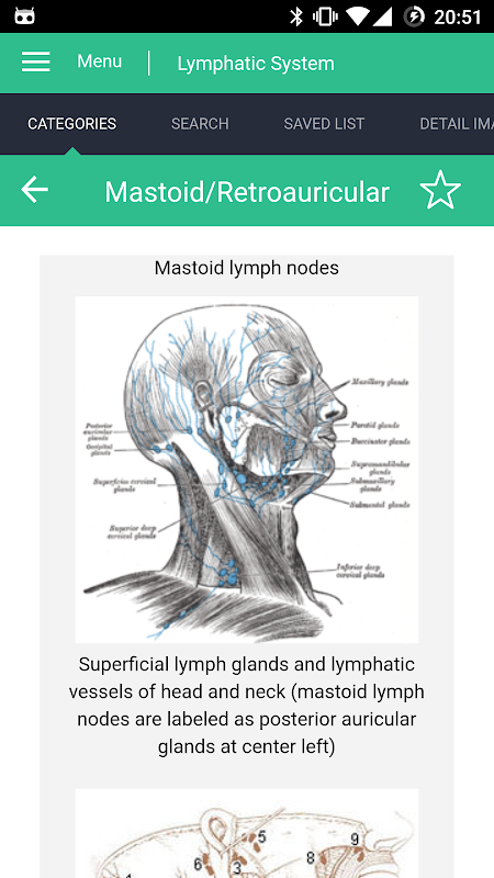 Questa applicazione consente di cercare e salvare il vostro soggetto linfatico sistema scelto per un accesso più rapido vi aiuta a studiare le varie materiale in modo più intuitivo.